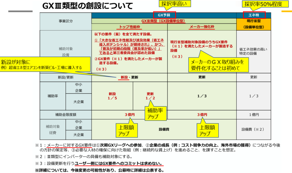 Ⅲ型設備のうちGX要件を満たしたメーカーが製造する設備